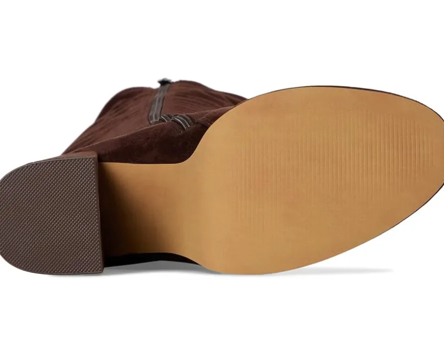 - The Steve Madden® Twain boot delivers a bold, retro-inspired style with a towering block-heel silhouette. This pull-on design features a microsuede upper that creates a streamlined, leg-hugging fit.