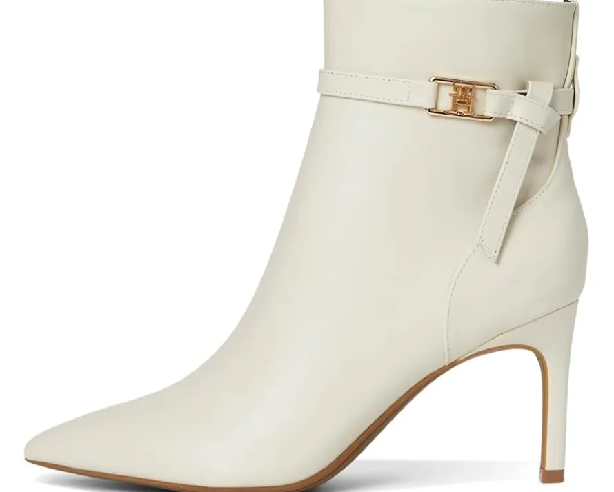 - The Tommy Hilfiger® Jorine with a delicate ankle strap and signature logo hardware emboldens a sleek dress bootie balanced by a pointy toe and tapered heel. Est. 1985, Tommy Hilfiger is a leading lifestyle brand celebrating the essence of American style.