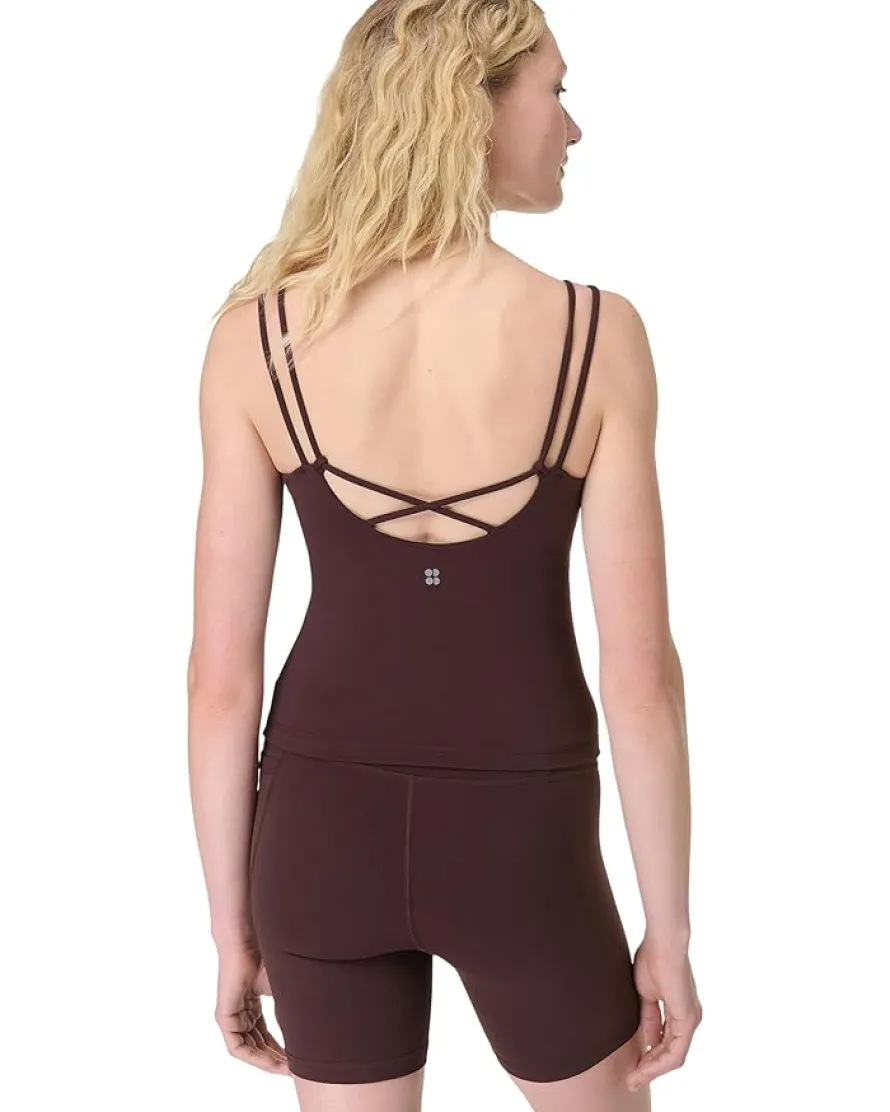 - The Sweaty Betty® Ultimate Studio Strappy Tank is the ultimate choice for yoga, Pilates, and barre enthusiasts. Crafted from quick-drying, sweat-wicking fabric with a soft, supple feel, it offers unmatched comfort and functionality. Featuring a scoop neckline and elegant crossover strap detailing at the back, this top combines style with performance. With built-in bra support and removable pads, it provides convenience and confidence for every workout.