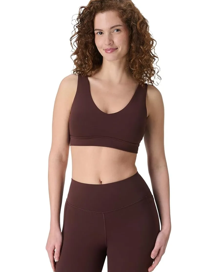 - Flow like never before in the Sweaty Betty® Ultimate Studio Voop Bra. Designed with a minimalist voop neckline and Y-back, this pull-on, wire-free beauty offers a second-skin feel without padding. Quick-drying, sweat-wicking fabric brings breathable comfort and supple softness with every stretch and pose. The smooth underband ensures a secure fit that supports without restricting, making transitions seamless and chic. With a sleek, streamlined silhouette, it pairs perfectly with your Ultimate Studio Leggings.