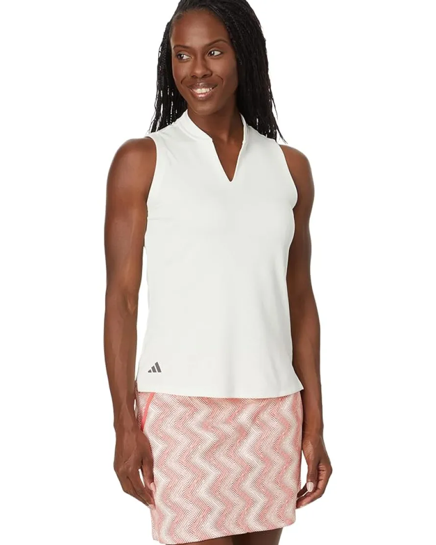 - Stay comfortable and breathable all day wearing the adidas® Golf Ultimate365 Textured Sleeveless Polo. The textured knit fabric of the polo shirt provides long-lasting comfort and an unrestricted range of motion. This polo shirt is styled with an open V-neckline with a stand-up collar and a sleeveless style. The side vents offer ventilation while the HEAT.RDY technology keeps you cool and dry on a hot, humid day. A great addition to your wardrobe, this collared polo is perfect to pair with casual shorts and skirts.