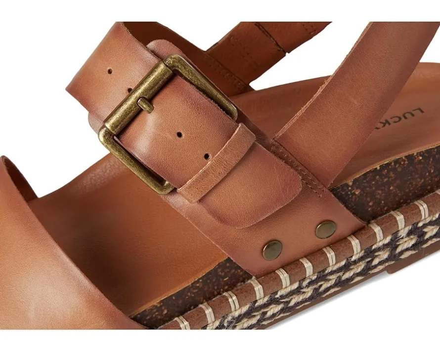 - Whether you’re heading to a sunny outing or a casual gathering, the Lucky Brand® Umora is perfect for all-day wear. This platform sandal features leather upper construction with polyester lining and cork footbed.