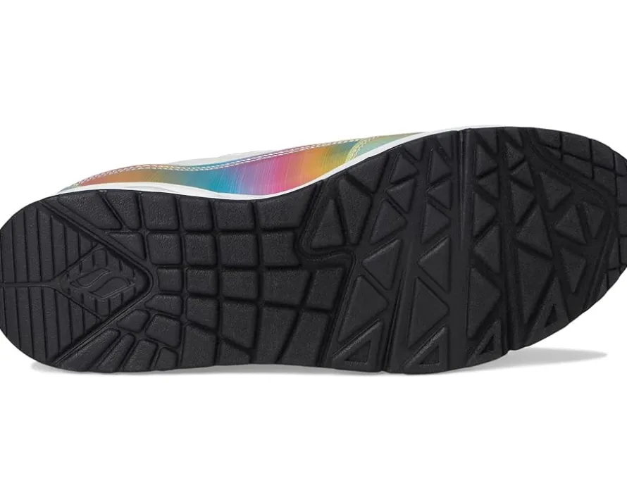 - Stand out with vibrant style wearing the SKECHERS® Uno – Opalescent shoes. These lace-up fashion sneakers feature a lenticular polyurethane upper and Skech-Air visible air-cushioned midsole, making them a comfortable footwear choice. They are crafted with a polyester lining and Skechers Air-Cooled Memory Foam® comfort insole.