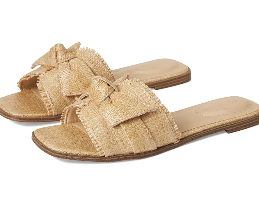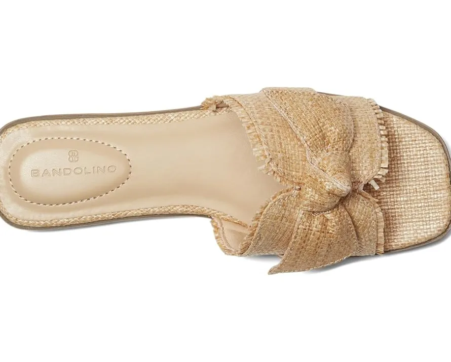 - The Bandolino® Vallen casual flats are your go-to style essential, blending modern flair with effortless wear. Crafted with a sleek PU upper and accented by an elegant bow detail, these sandals bring a feminine twist to any look. The open toe and contemporary square toe design elevate your everyday outfits with a trendy edge. Featuring a slip-on silhouette for easy wear, a soft polyester lining, and cushioned foam insole for all-day comfort, every step feels like a dream. The durable synthetic rubber outsole offers grip and flexibility wherever you go.