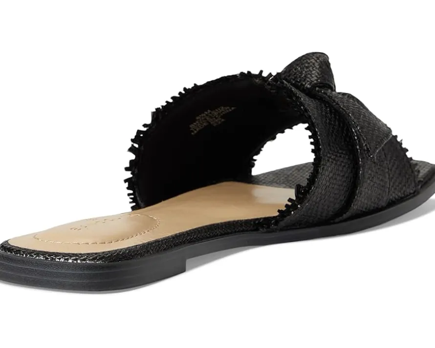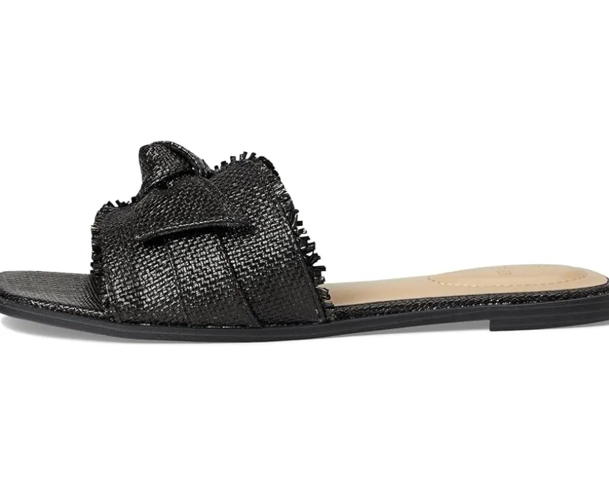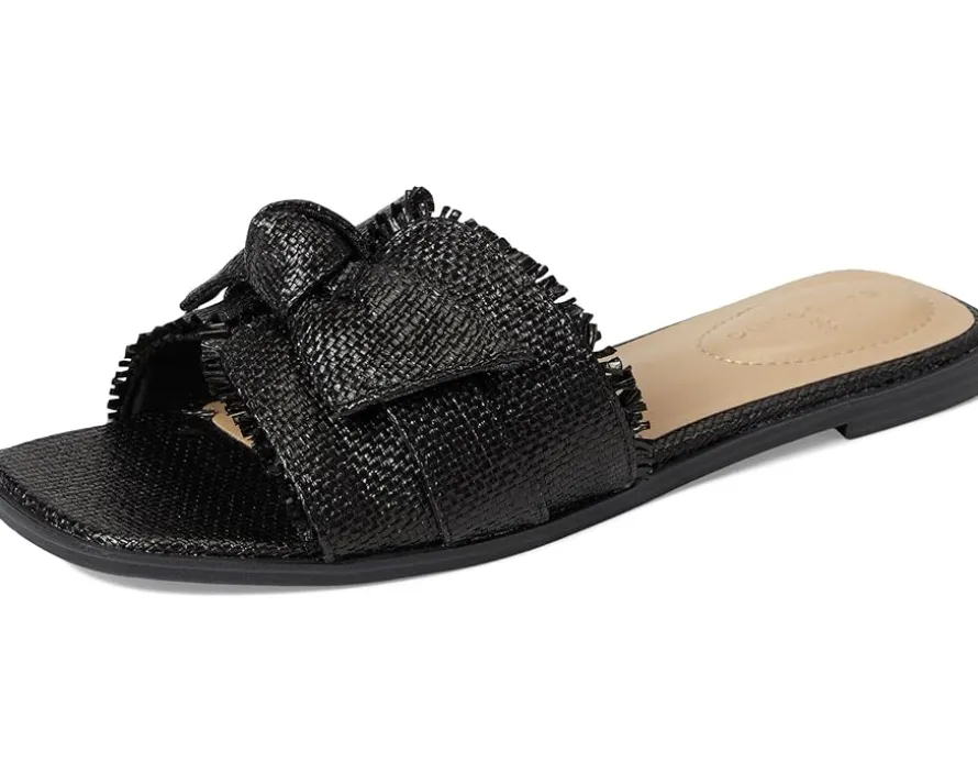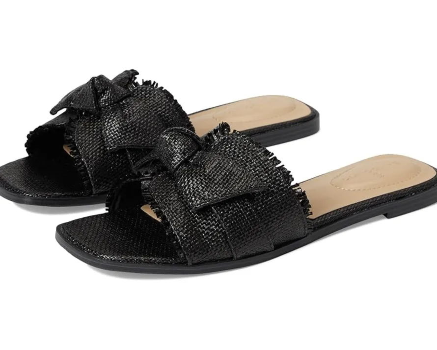 - The Bandolino® Vallen casual flats are your go-to style essential, blending modern flair with effortless wear. Crafted with a sleek PU upper and accented by an elegant bow detail, these sandals bring a feminine twist to any look. The open toe and contemporary square toe design elevate your everyday outfits with a trendy edge. Featuring a slip-on silhouette for easy wear, a soft polyester lining, and cushioned foam insole for all-day comfort, every step feels like a dream. The durable synthetic rubber outsole offers grip and flexibility wherever you go.