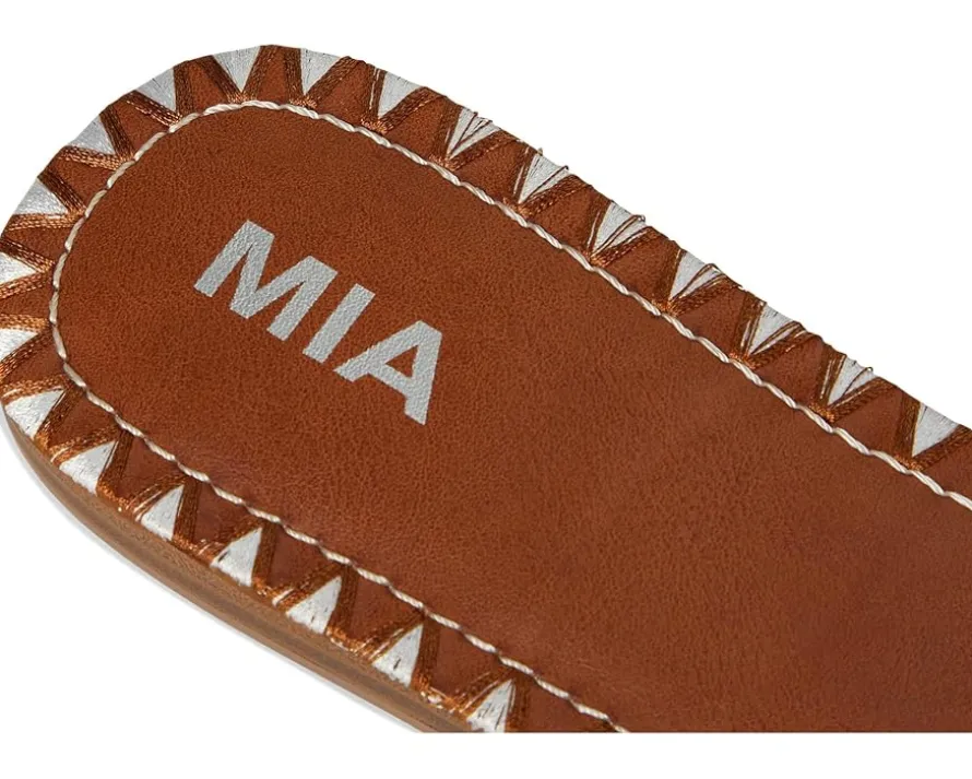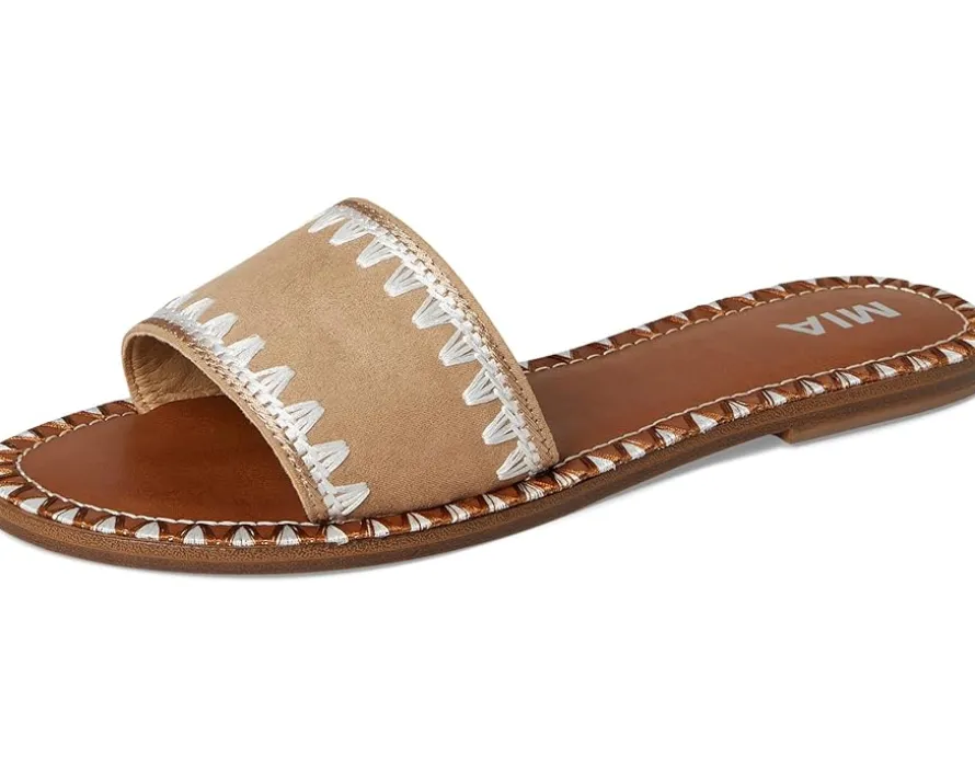 - Essential for warmer days ahead, the MIA™ Vanett is the easiest slip-on sandal to throw on and make a statement with. Crafted from vegan leather, an embroidered stitched edge and a suede upper, you won’t want to take them off.
