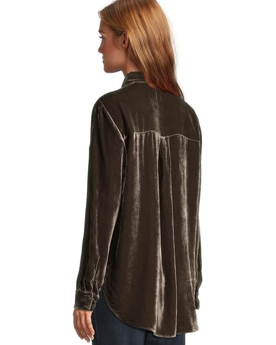 - Slay the style game wearing the Eileen Fisher® Velvet Classic Collar Long Shirt. The shirt features a collared neck, a full button-front closure, long sleeves with buttoned cuffs, and a standard-length silhouette with a shirttail hem.