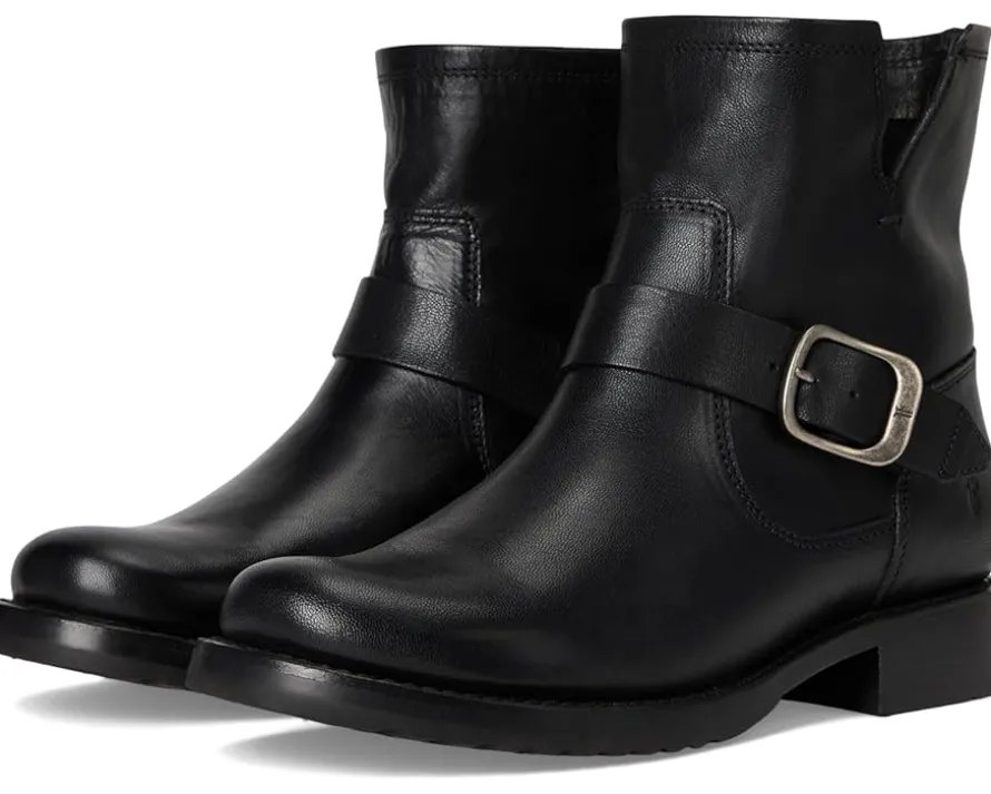 - Inspired by a vintage motorcycle jacket, the Frye® Veronica Flex Booties are crafted from premium leather upper and feature a new Flex cork outsole construction that provides out-of-the-box comfort. The leather insole and lining make them comfortable for all-day wear. These leather boots are crafted with Goodyear welt construction for added durability. These short boots add a modern edge to any look and get better with age.