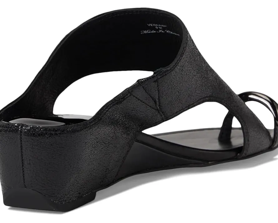- The Donald Pliner® Vesna sandal blends elegance and ease with its toe ring design and metal ornament detail. A memory foam insole enhances comfort, while the demi wedge heel wrapped in matching textures adds a polished finish.