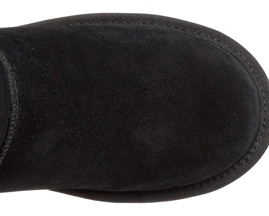 - Soft suede upper adorned with dainty bows and a row of plush, exposed sheepskin.