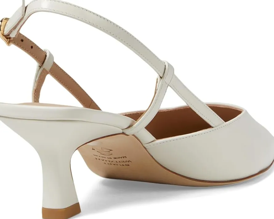 - Embrace luxury and comfort styling Stuart Weitzman® Vinnie 50 Slingback. Crafted from luxurious leather, this chic slingback combines a sleek pointed toe with a stiletto heel for a touch of sophistication and edge. The adjustable buckle closure ensures a secure fit while adding a polished detail. With its sumptuous leather upper, lining, insole, and outsole, this versatile design seamlessly transitions from day to night.