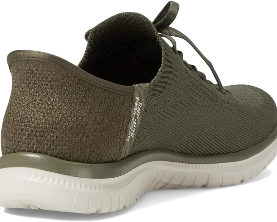 - Step into effortless comfort with SKECHERS® Virtue – Divinity Hands Free Slip-Ins. Designed with the exclusive Heel Pillow™, these shoes feature a Stretch Fit® engineered knit upper with fixed laces and a cushioned Skechers Air-Cooled Memory Foam® removable insole. The Skechers Hands Free Slip-ins® offer an easy fit.