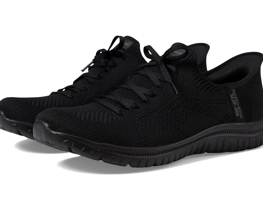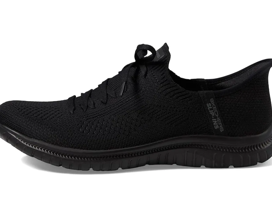 - Step into effortless comfort with SKECHERS® Virtue – Divinity Hands Free Slip-Ins. Designed with the exclusive Heel Pillow™, these shoes feature a Stretch Fit® engineered knit upper with fixed laces and a cushioned Skechers Air-Cooled Memory Foam® removable insole. The Skechers Hands Free Slip-ins® offer an easy fit.