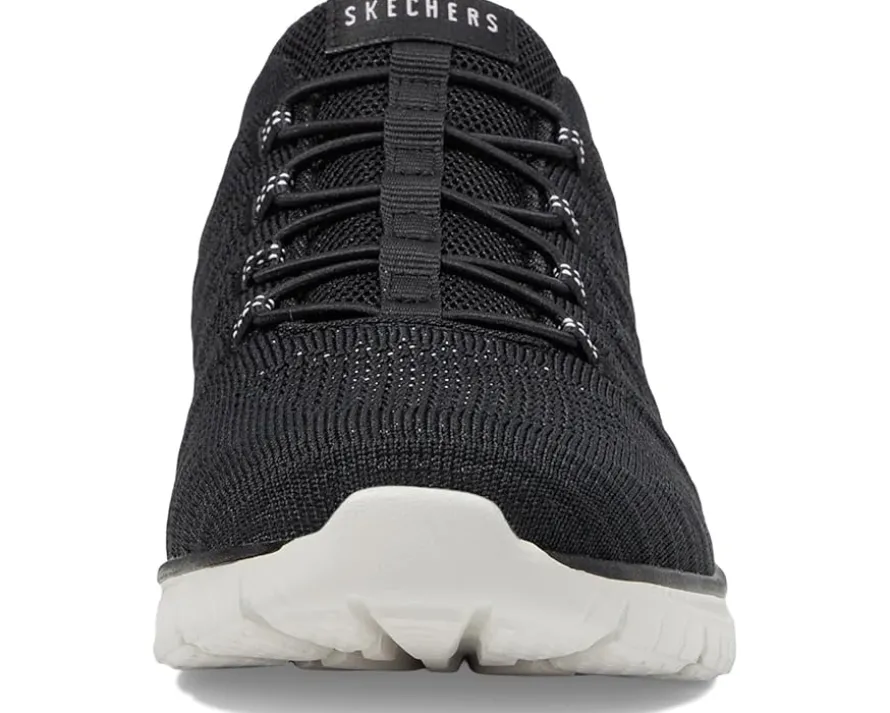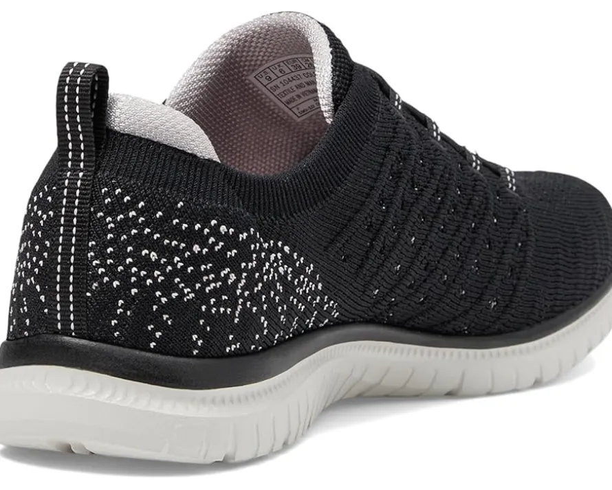 - Make your everyday jogging much more fun and comfortable wearing SKECHERS® Virtue Show Runner Shoes. These feature a round-toe silhouette with a bungee lace closure and ankle pull tab for donning & doffing. The low-top running shoes are crafted with a breathable & engineered knit upper and a memory foam rubber insole for ultimate comfort.