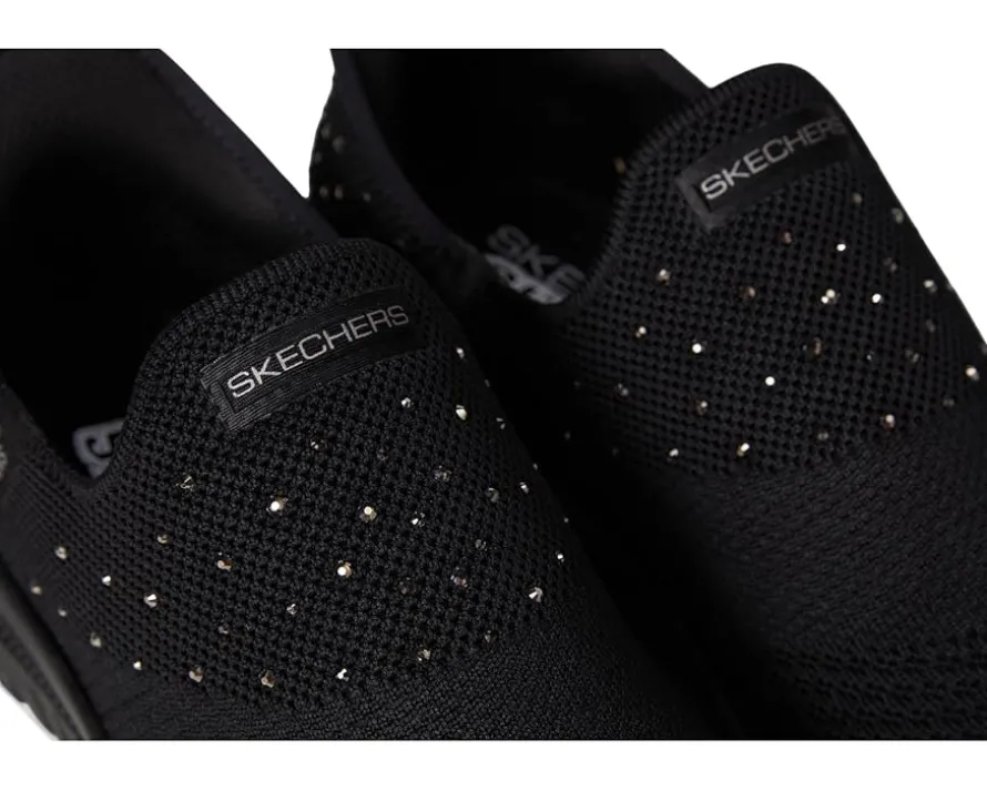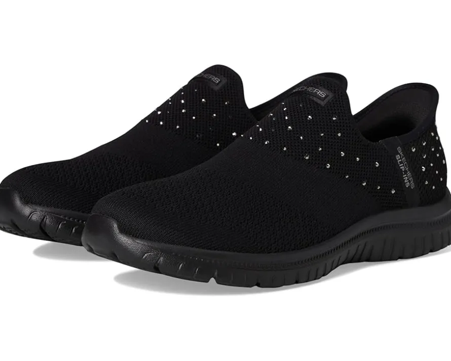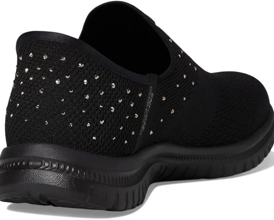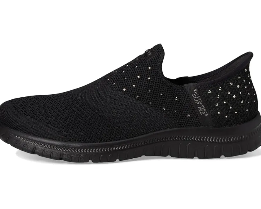 - The Skechers® Virtue Starlight Hands Free Slip-Ins feature engineered knit upper construction with rhinestone adornments offering a shimmery look. With an easy pull-on silhouette, the rounded toe footwear features unlined construction and padded collar for added comfort.