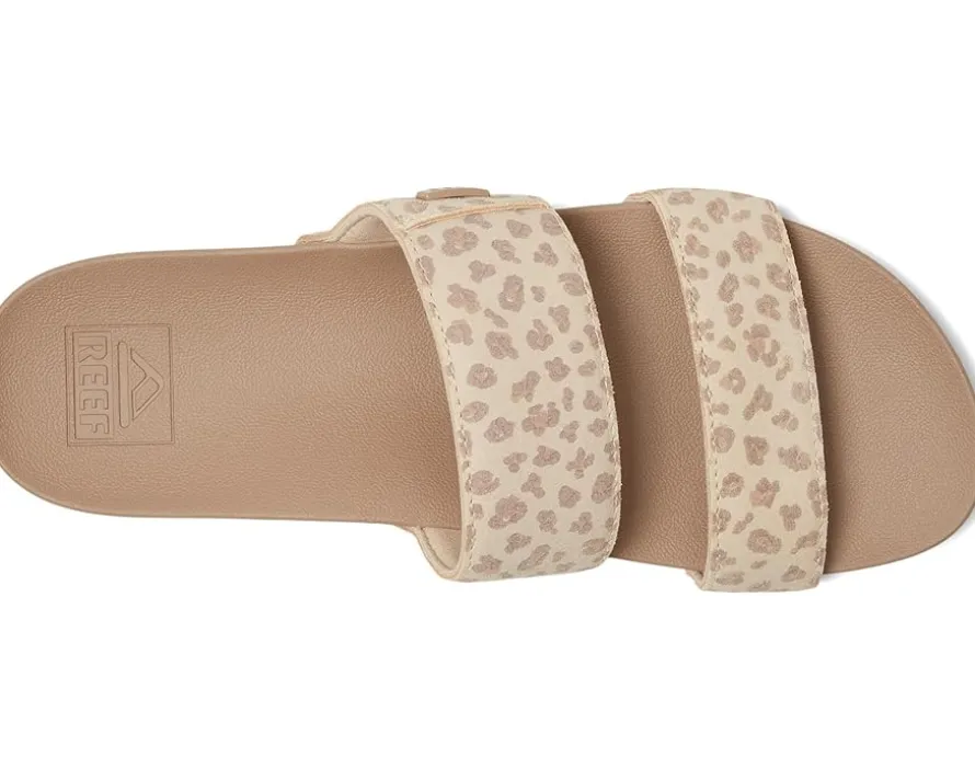 - From brunch dates to boardwalk strolls, the Reef® Vista Stevie elevates your everyday style and comfort level with a cushy and contoured Vista polyurethane insole. This slip-on style sandal features a plush suede upper, soft jersey lining with dual straps, open toe silhouette, and a lightweight, durable rubber sponge outsole.