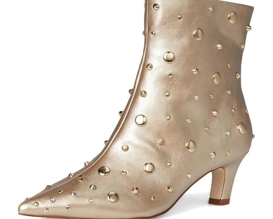 - The Jessica Simpson™ Viviana Kitten Heel Studded Bootie has the added detail you expect from the brand with stud details allover. Featuring a sleek snip toe silhouette, the ankle-high footwear has a low kitten heel and side zipper for easy entry.