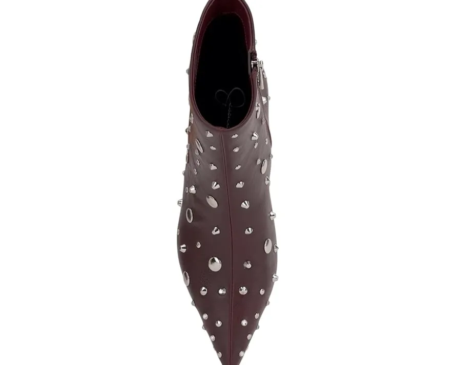 - The Jessica Simpson™ Viviana Kitten Heel Studded Bootie has the added detail you expect from the brand with stud details allover. Featuring a sleek snip toe silhouette, the ankle-high footwear has a low kitten heel and side zipper for easy entry.