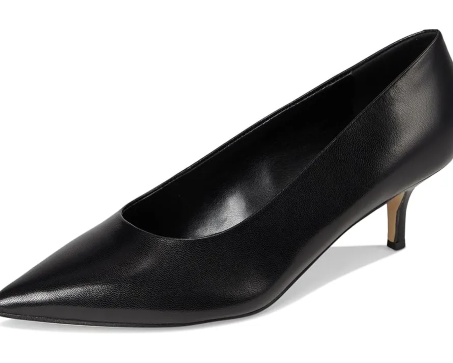 - The Calvin Klein® Voneta pumps redefine elegance with their sleek design and versatile appeal, making them the ultimate wardrobe staple. Crafted with a smooth leather upper and soft polyester lining, they promise both durability and comfort. The slip-on silhouette with a pointy toe delivers a chic, polished look, while the mid stiletto kitten heel adds just the right lift for all-day confidence. Designed with a lightweight EVA outsole, these pumps ensure effortless movement from boardroom to evening out.