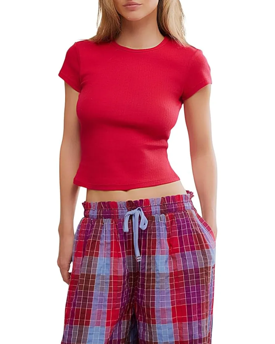 - The Free People™ Wait A Minute Baby Tee blends feminine charm with everyday comfort. Crafted from soft, light fabric, this fitted tee offers a flattering silhouette. With short sleeves, this piece is perfect for layering or wearing solo for an elegant, understated look.