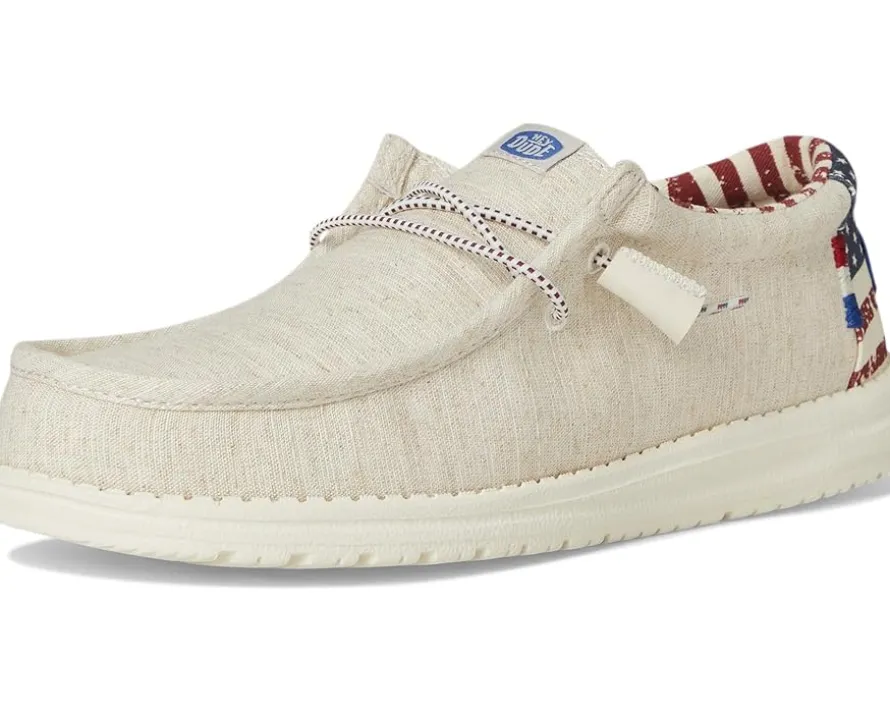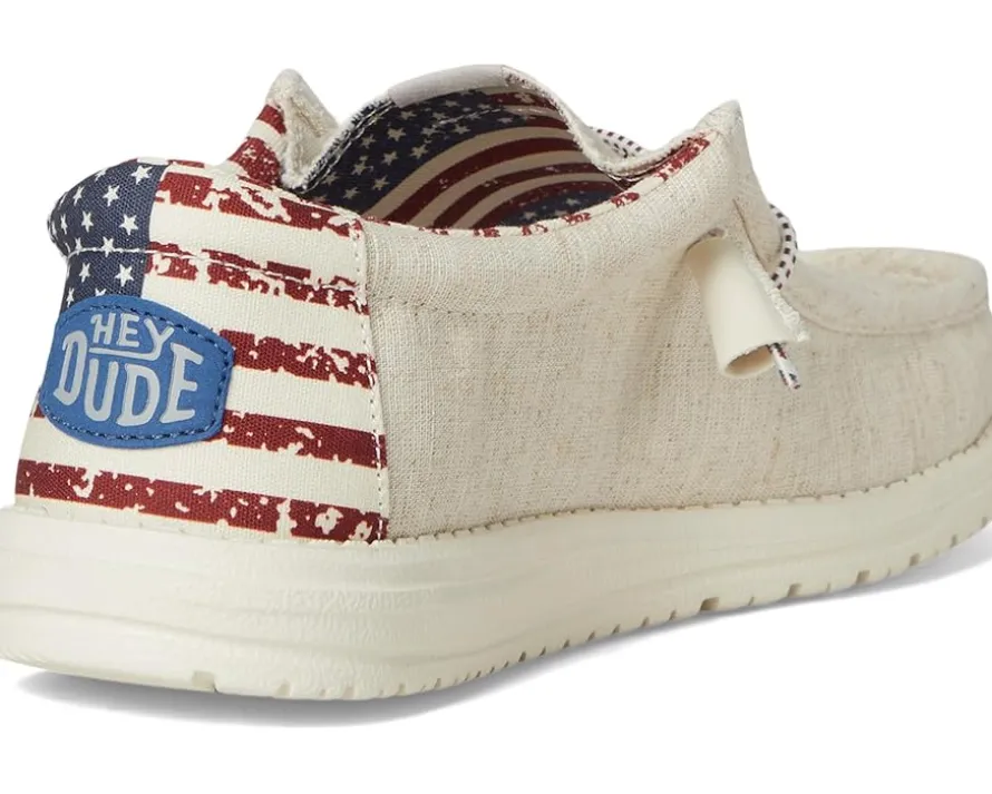 - Let freedom ring. The Wally Patriotic is your all-American go-to. The cotton-canvas upper is breathable, durable and BBQ-ready. The foam insole is for do-everything, warm-weather seasons. And the flexible, lightweight outsole adds just another HEYDUDE™ feature you love. A stars-and-stripes style that’s made for summer days