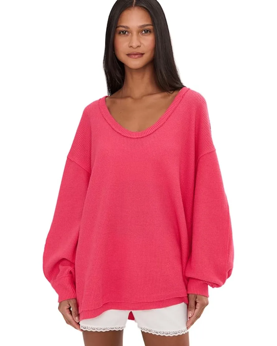 - Keep yourself cozy yet in style, wearing the Free People™ We The Free Coast 2 Coast Thermal Sweater. With its slouchy, relaxed fit and waffle knit construction, the pullover-style sweater makes a great pick for casual wear. It features a V-neckline, dropped shoulders, long sleeves with ribbed cuffs, exposed seams, and a slightly longer length.