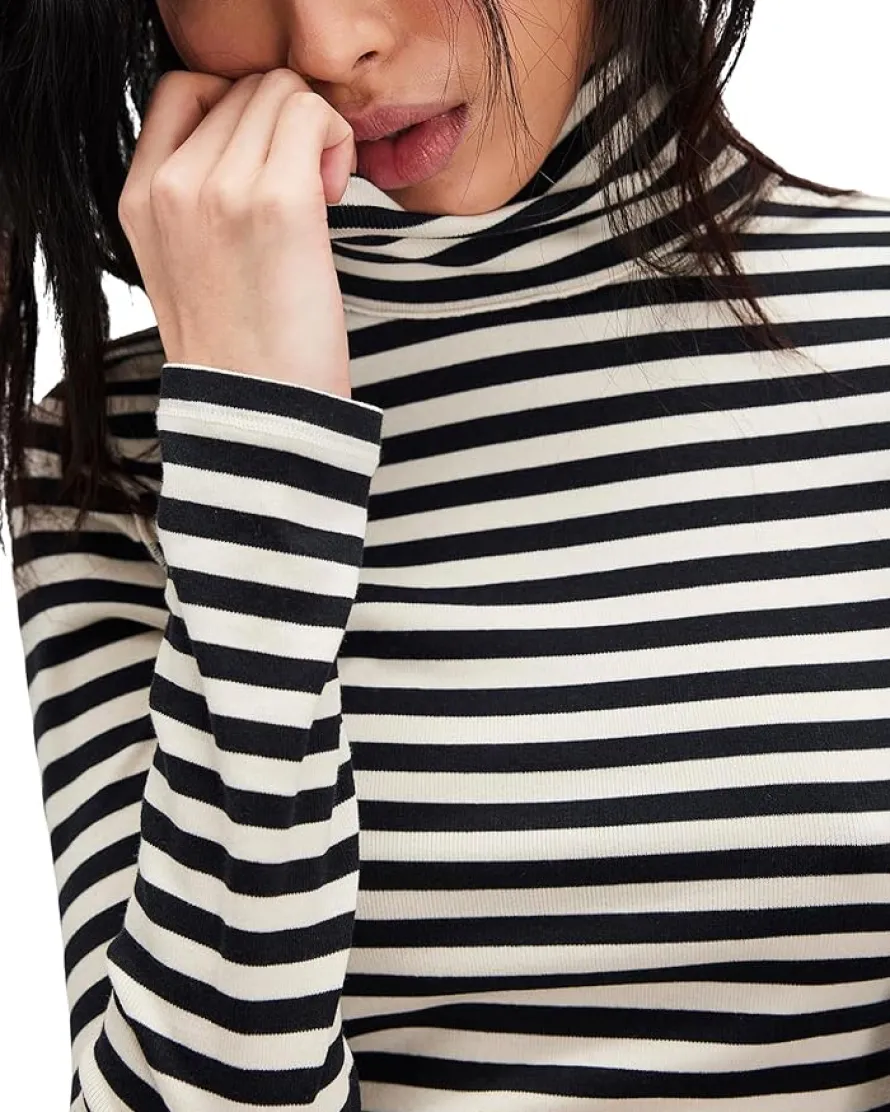 - Designed in a ribbed knit fabrication with striped detailing, the Free People™ We The Free Good Good Stripe Turtleneck features a slim fit silhouette. It has a turtle neckline, long sleeves, and exposed seam detailing that adds a subtle edge.