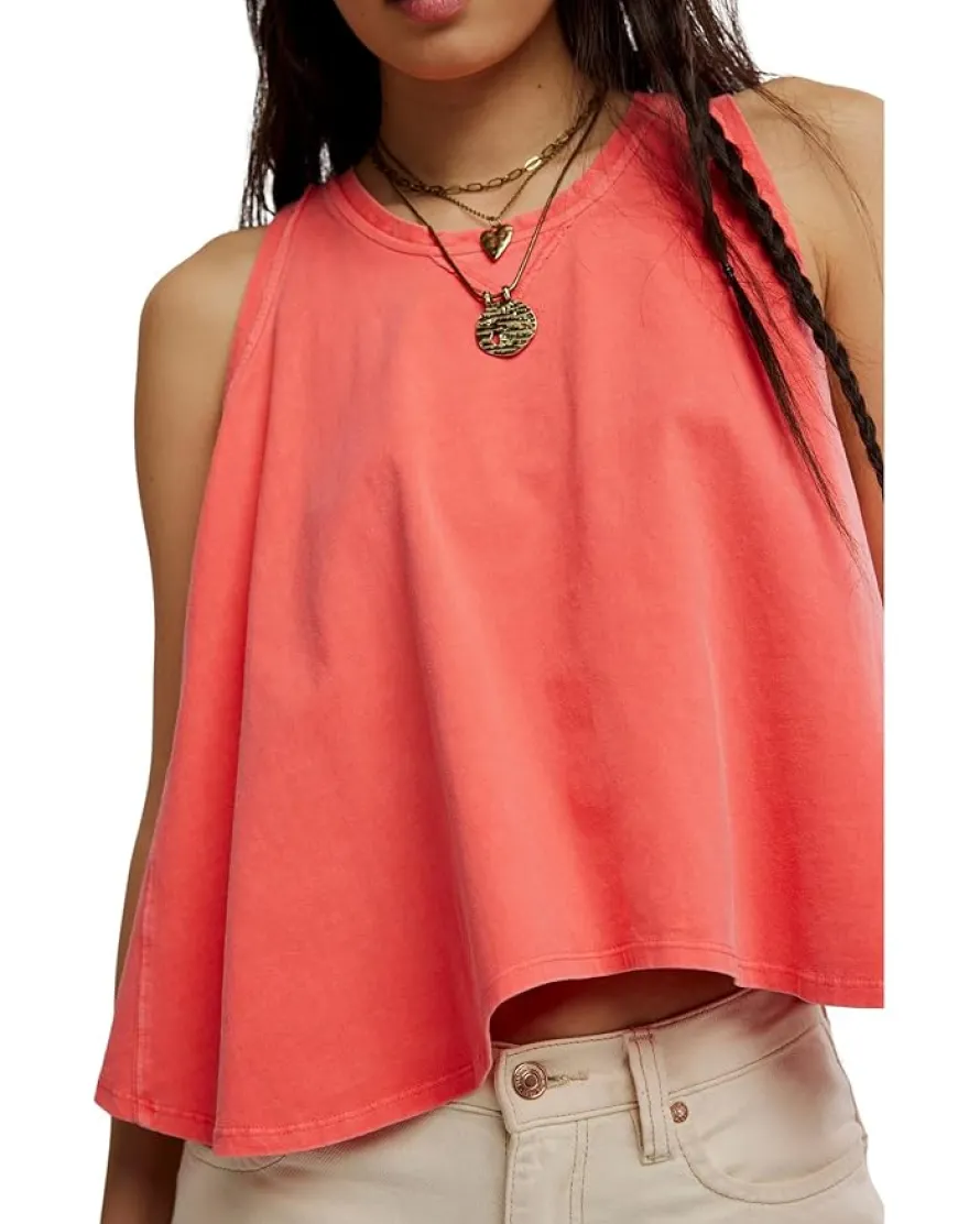 - Go with the flow in this billowy tee from We The Free, featured in a tank style with a drapey inverted hem and racerback for an essential, effortless staple. Pair with easy, breezy linen pants for a beachy look. Featuring a billowy jersey fabrication, high scoop neckline, V-stitch detail, drapey inverted hem, and a slight racerback design.