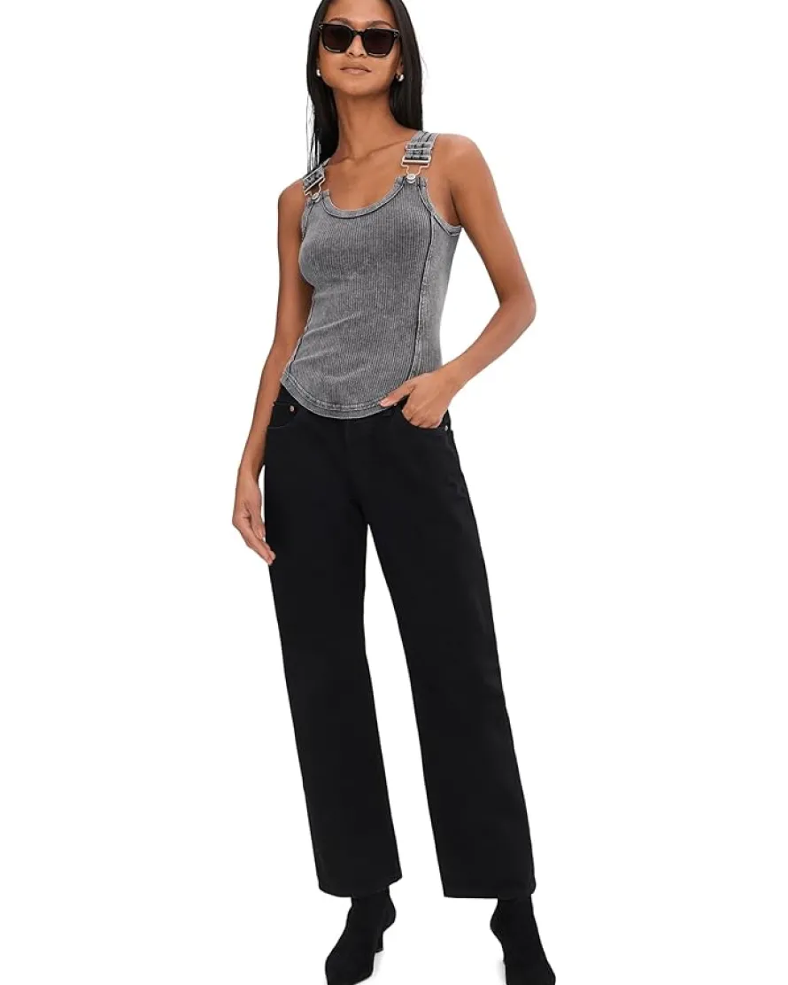 - A staple tank gets a touch of edge with this hardware-adorned style from We The Free, featured in a ribbed fabrication with overall-inspired straps for an unexpected accent. The metal details take this tank to the next level.