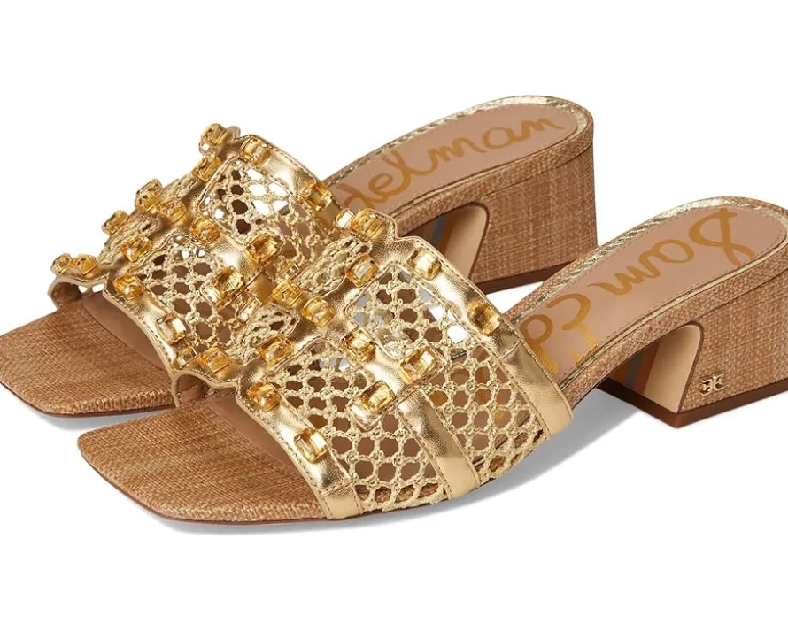 - Exude refined style without compromising on comfort wearing Sam Edelman® Webster Sandals. The slip-on style sandals are crafted with a polyurethane upper with thread & stone detailing, a polyurethane lining, and a faux leather insole. The block heel detail further elevates the look.