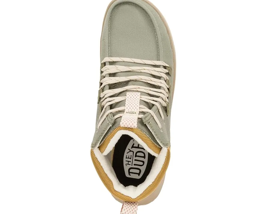 - Walk into the Hey Dude® Wendy Peak Apres Coated Twill, where water-resistant, premium leather uppers keep your feet warm and stylish, no matter the weather. Enjoy the fabric lining and cushioned EVA insole for ultimate comfort, while the lightweight, flexible rubber outsole ensures effortless movement. With a round toe and easy slip-on design, these ankle-high booties offer practical elegance and seasonal flair with lace design, making them your go-to choice for any adventure.