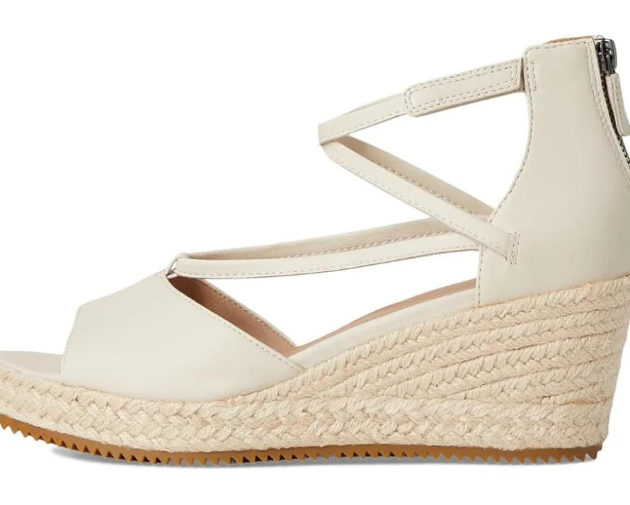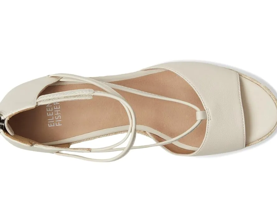 - The Eileen Fisher® Wesson Wedge sandal boasts espadrille jute wrapped detail with a soft leather upper, tubular bands, side elastic to ensure fit and back zip for entry. Featuring a peep toe silhouette, the footwear has rubber outsole for maximum grip.