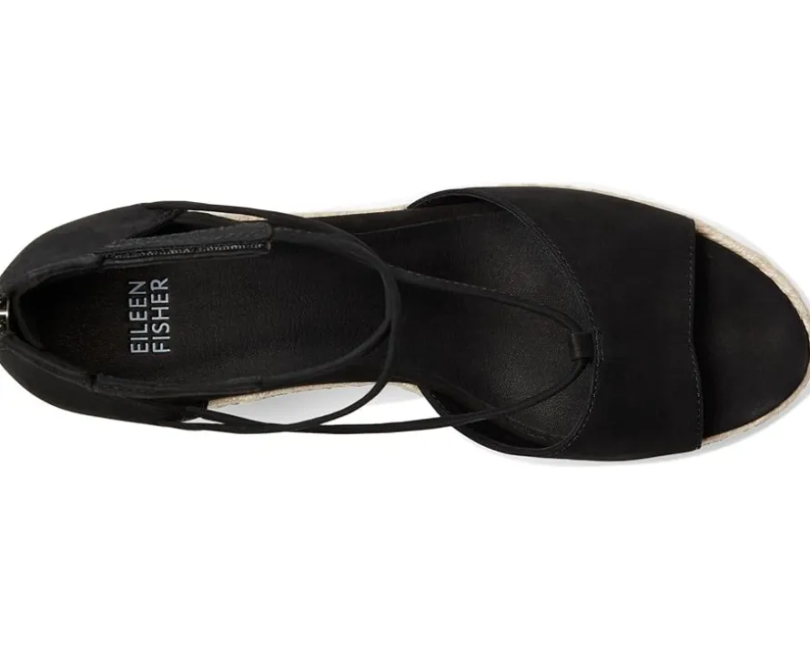- The Eileen Fisher® Wesson boasts a stylish multi-band upper with jute-covered wedge espadrille. Featuring a convenient back zipper for easy entry, the sandal ensures a perfect fit with its hook-and-loop ankle closure. The breathable leather lining and padded foam insole provide exceptional comfort.