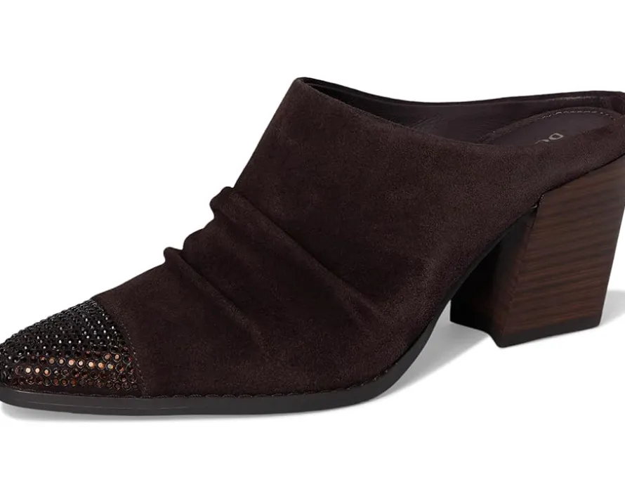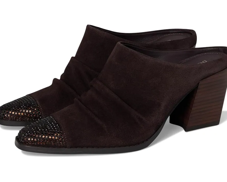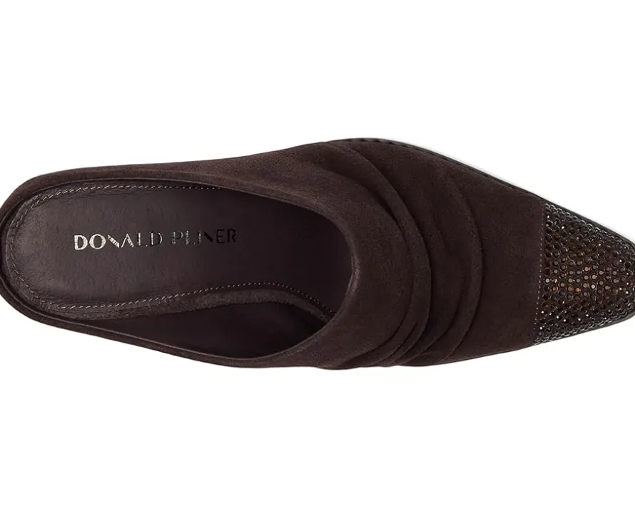- Slip into luxe confidence wearing the Donald Pliner® Westansp heeled mule. Crafted with a rich leather upper, smooth leather lining, and cushioned leather insole, it’s made to impress from the inside out. The pull-on silhouette showcases refined ruching, blending relaxed sophistication with trend-forward design. A crystal-embellished toe welt brings the sparkle, instantly elevating your step with subtle glam. Finished with a stacked block heel and durable rubber outsole, this mule delivers stability, comfort, and style in one sleek package.