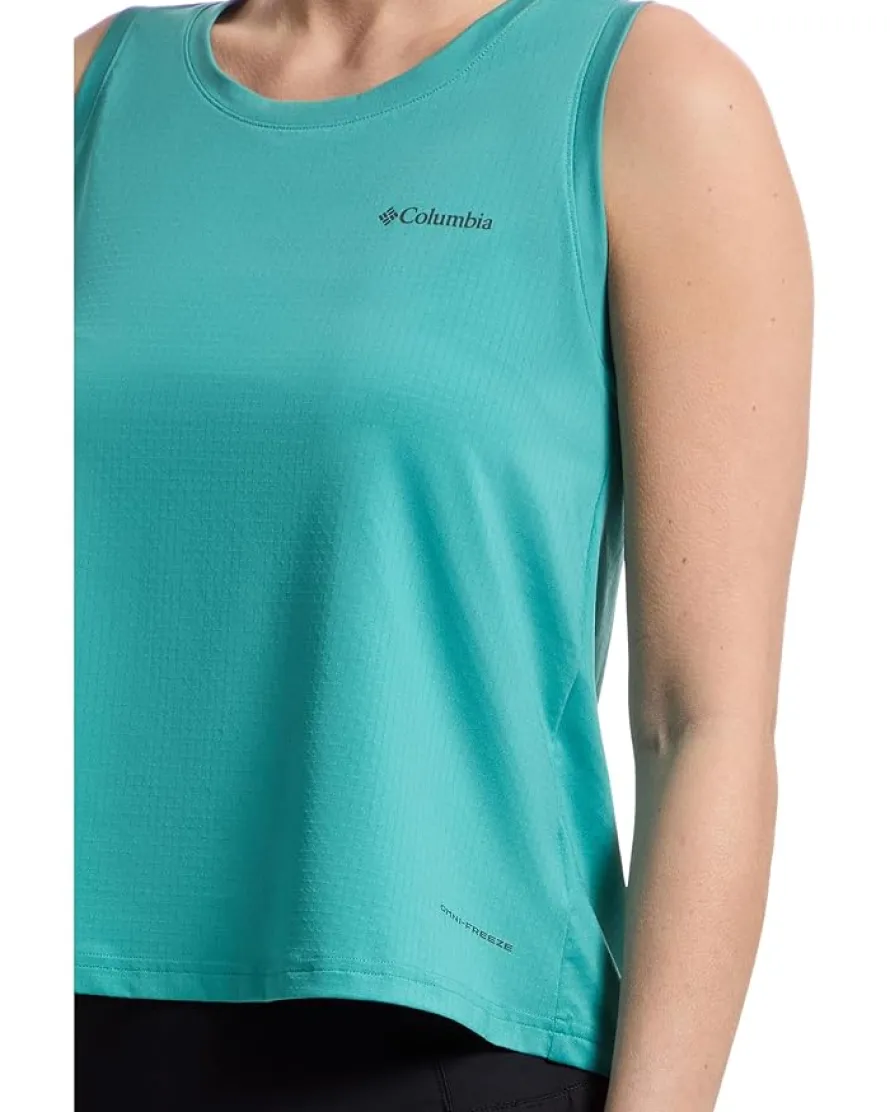 - Get ready for your next outdoor adventure choosing the Columbia® Wild Springs™ Tank. Featuring Omni-Shade™ UPF 40 protection, this tank will keep you safe from the sun’s rays. The crew neckline and short sleeves offer a classic look, while the straight hem adds a modern touch. Thanks to Omni-Freeze™ Zero technology, you’ll stay cool and dry with sweat-activated blue rings that efficiently absorb moisture and promote evaporation.