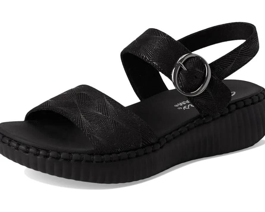 - Enjoy sunny days in breezy comfort with Skechers® Wilshire BLVD – Illusion of Love. Crafted from textured vegan shimmer suede upper with adjustable strap and buckle, this pair of sandals features open round toe, luxe foam cushioned comfort footbed, midsole stitching trim, low heel, and brand detailing on the footbed.