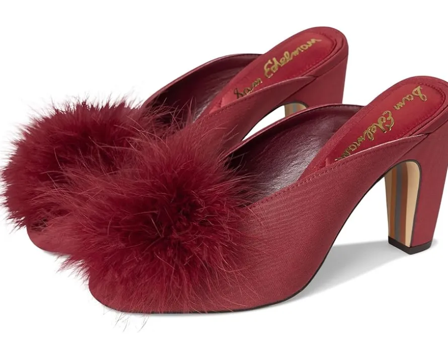 - All eyes on you. The Sam Edelman® Witney Mule Shoes add playful drama with a bold faux fur pom-pom, perfect for dressing up denim or going full glam. Crafted from a synthetic resin upper, polyester lining, synthetic insole, and polyurethane outsole.