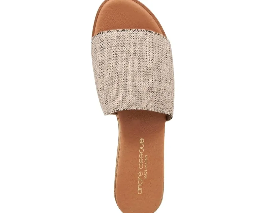 - No matter where you are headed, the Andre Assous™ Nessie Sandals will always treat your feet with exceptional comfort while enhancing your look with a bit of elegance. Highlighting a simple modern style with an open round toe and a subtle wedge heel, the shoes are meticulously designed with a stretchy textile upper, a soft and breathable leather lining, and a cushioned leather insole.