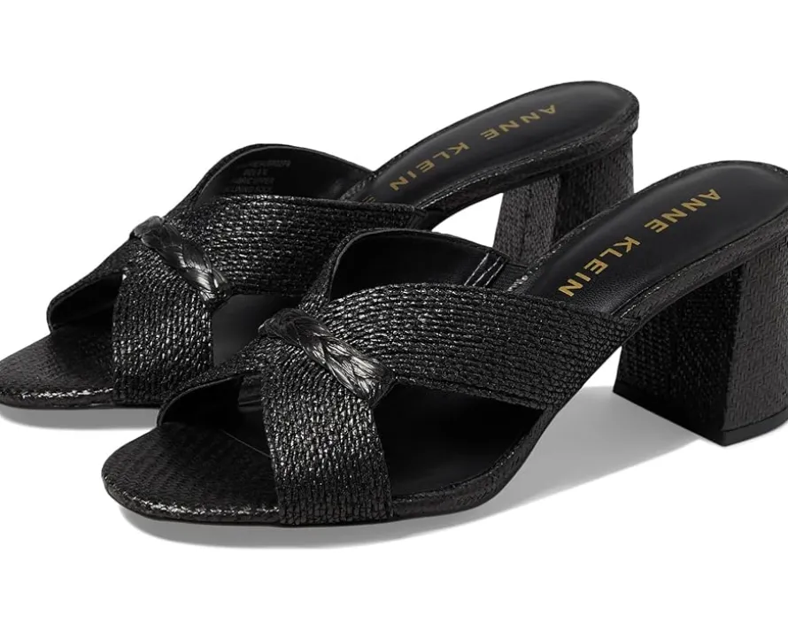 - Emanate and aura of elegant sophistication wearing Anne Klein® Aubrie sandals. It features faux leather upper, man-made lining, and rubber cushioned insole. A slip-on style, wide vamp, and block heel allows firm traction without causing discomfort. An Iflex technology provides a 90 degree bend, making it an indispensable addition to your footwear collection.