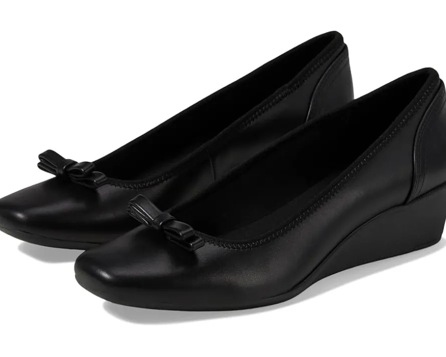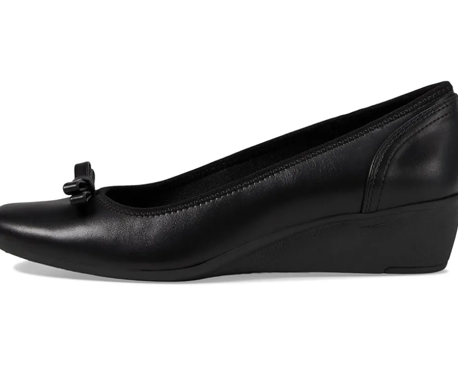 - Step out in sophistication by donning the Anne Klein® Waldorf heels. The man-made upper is beautifully accented with a graceful bow embellishment, while the textile lining and insole ensure a cozy fit. Designed for lasting comfort, these pumps are perfect for all-day wear with their stylish wedge heels.