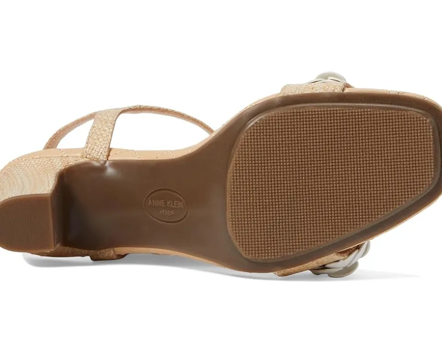 - Unlock your inner diva wearing the chic and classy Anne Klein® Yardley. Crafted from man-made upper, lining and insole, this pair of stylish sandals features open square toe, block heels, eye-catching flower embellishment on the top, ankle strap with buckled closure and cushioned footbed. It comes with brand detailing on the footbed.