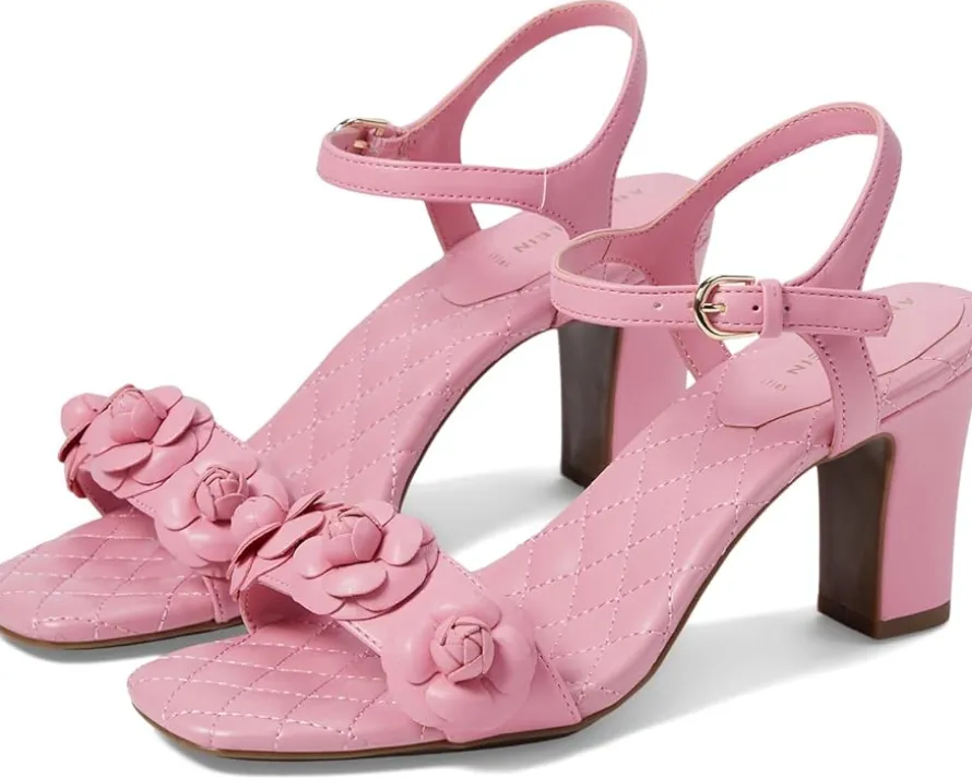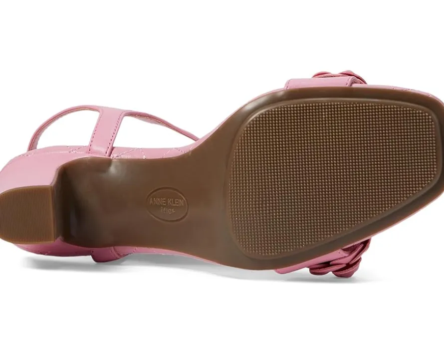 - Unlock your inner diva wearing the chic and classy Anne Klein® Yardley. Crafted from man-made upper, lining and insole, this pair of stylish sandals features open square toe, block heels, eye-catching flower embellishment on the top, ankle strap with buckled closure and cushioned footbed. It comes with brand detailing on the footbed.