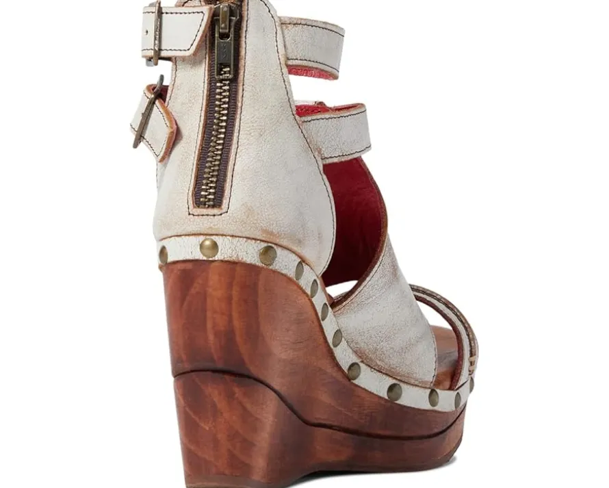 - Distressed leather upper with belted strap at instep.