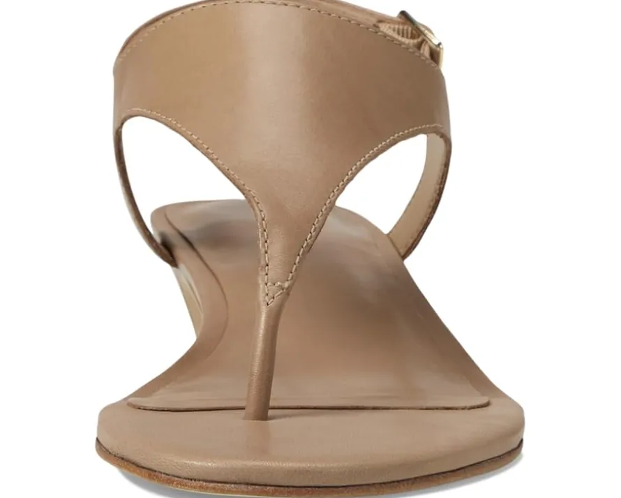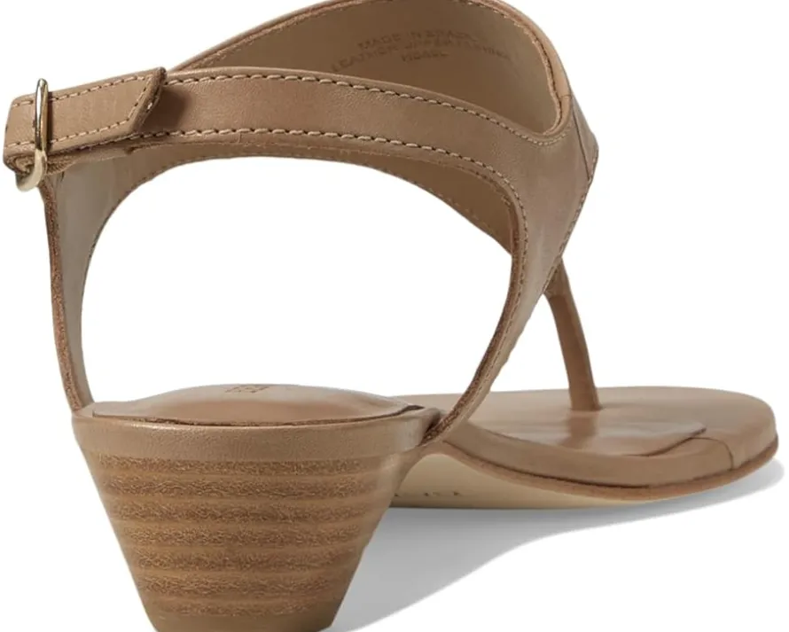 - Keep things elegant yet comfortable wearing the Bernardo® Goldy Thong Sandals featuring a leather upper, lining, and footbed. Heightened by a stacked, mid-block heel, the shoes come structured with an adjustable buckle closure on the slingback strap.