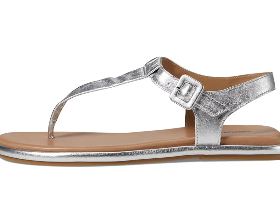 - Look fabulously chic in your modern look wearing the Bernardo® Tucson Flat Sandals. The T-strap footwear features leather upper construction with buckled ankle strap closure and open square toe silhouette.