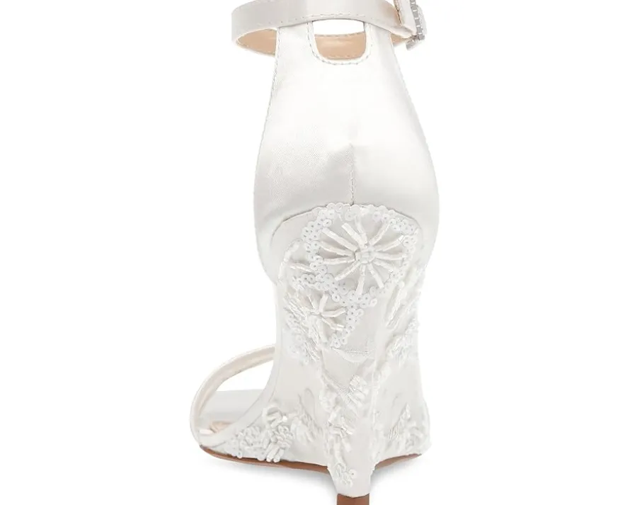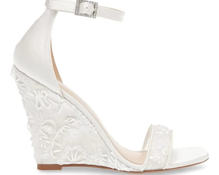- Leave an impression walking in the edgy sequin embellished Blue™ by Betsey Johnson Ivan wedge sandals. The wedges showcase chic sequin embellished floral design on mesh fabric overlay.