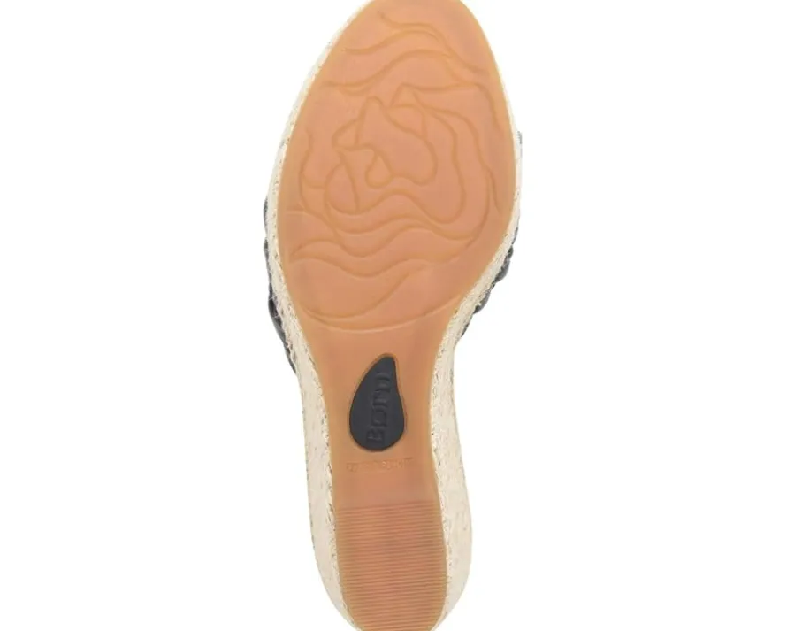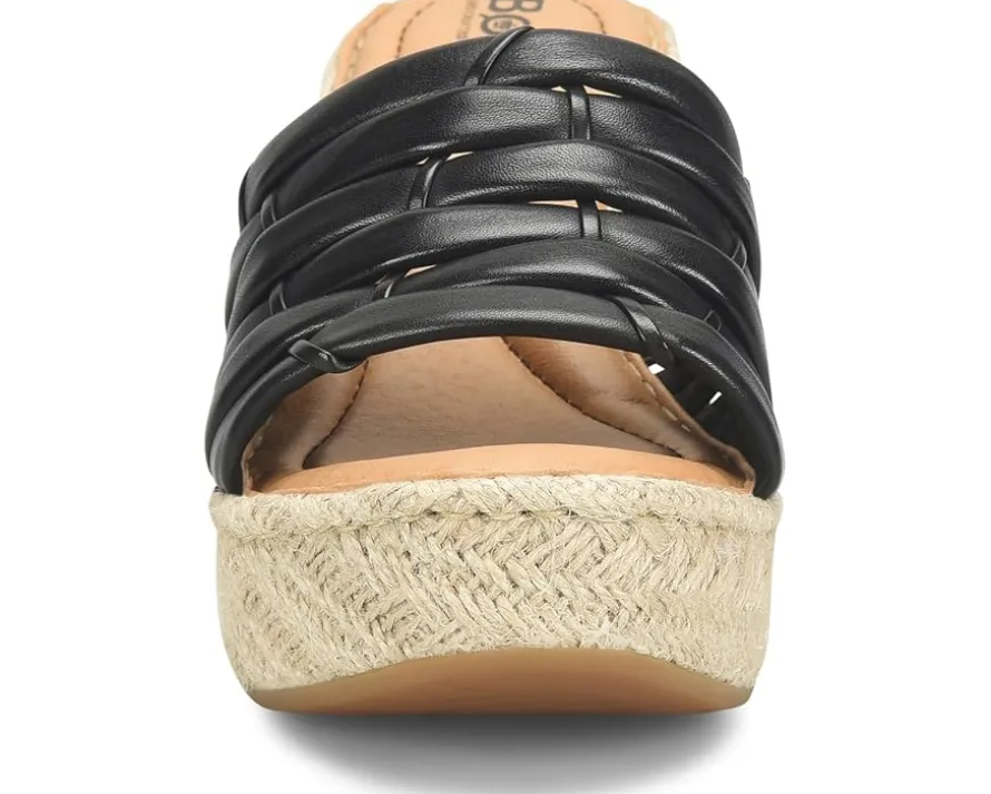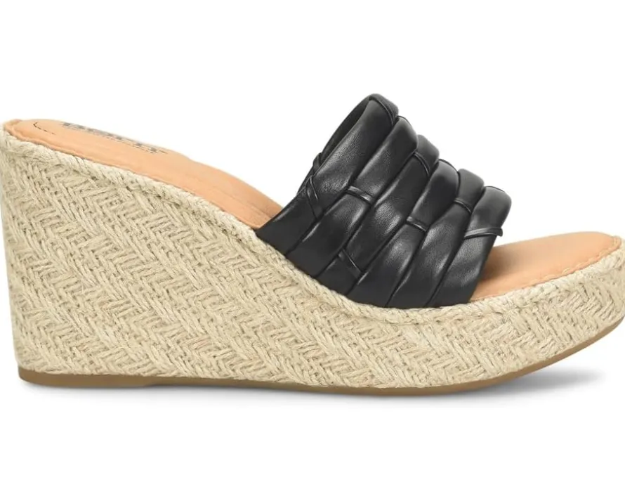 - Take the plunge and elevate your style wearing the Born® Aneesa. Crafted from soft, hand-finished suede leather upper, breathable fabric suede lining and leather insole, this pair of sandals features open round toe, slip-on style, wedge heel, soft leather covered footbed with arch support and extra foam for added comfort.