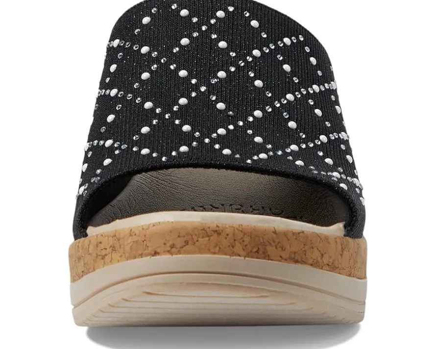 - Spark boldly wearing the Bzees® Royal Wedge Sandals featuring an abstract design on the vamp. The slip-on footwear has nylon upper construction with fabric lining and wedge heels for support.