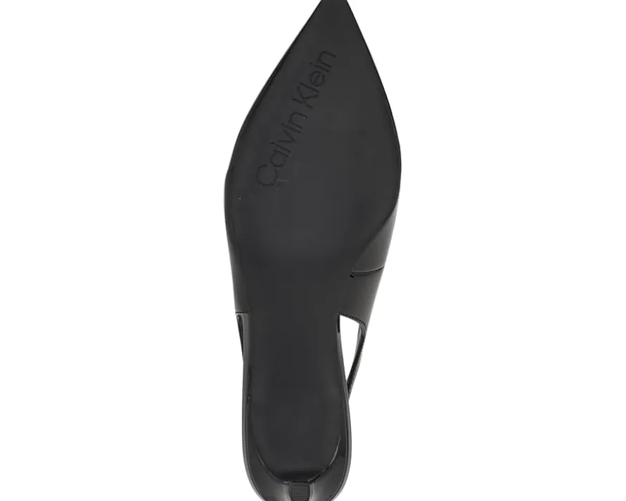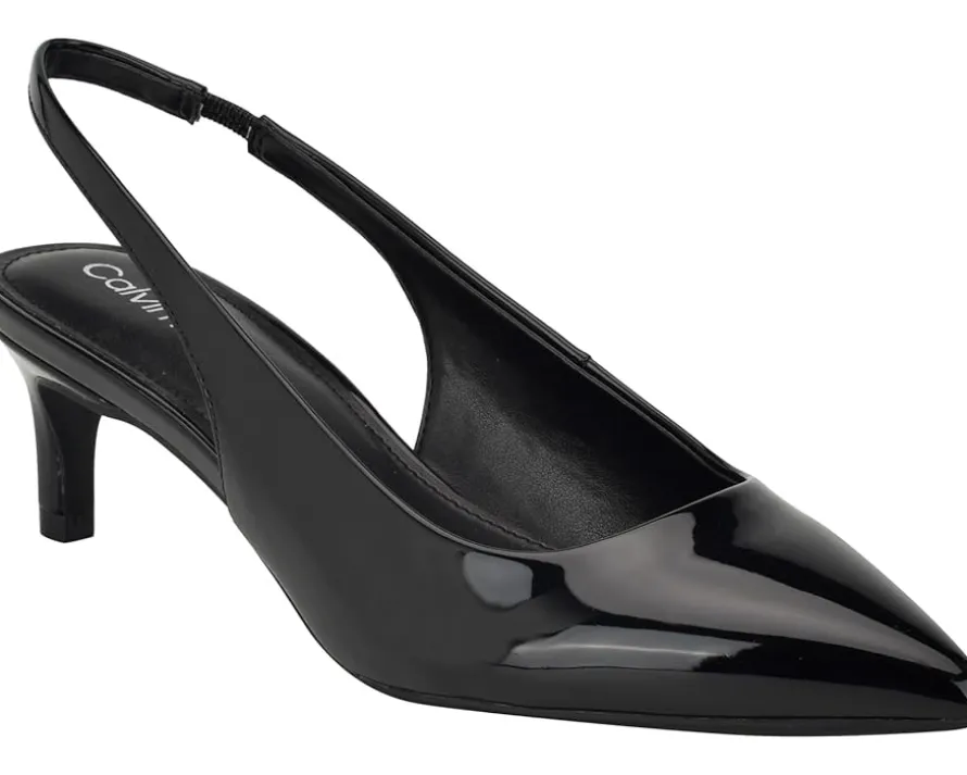 - Be ready to jealous your friends at the party by wearing the stylish and trendy Calvin Klein® Dainty heels. These kitten heels are designed with pointed toe design, elasticized slingback strap closure, and faux patent leather upper.