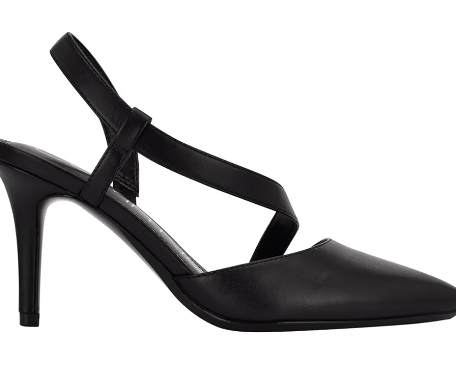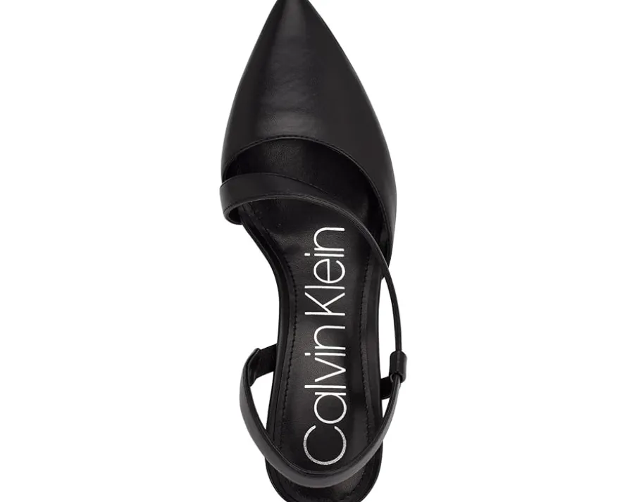 - Calvin Klein® Greer is a classy and timeless pair of dress pumps that gets a contemporary update with a stretch-infused slingback strap and a self-covered, high stiletto heel. The shoes are crafted in a pointy toe silhouette with a faux leather or textile upper, a man-made lining, and a lightly padded insole.